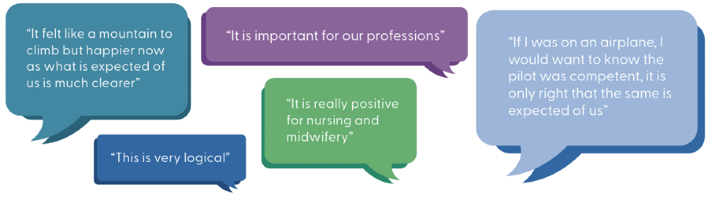In 2022, NMBI began developing the Professional Competence Scheme. In 2023 and 2024, we held a public consultation on the draft Professional Competence Scheme Guideline for Registered Nurses and Registered Midwives. An analysis of the data from the consultation phase has been fundamental in refining the pilot Professional Competence Scheme, ensuring it is both practical and feasible for registered nurses and midwives to use.