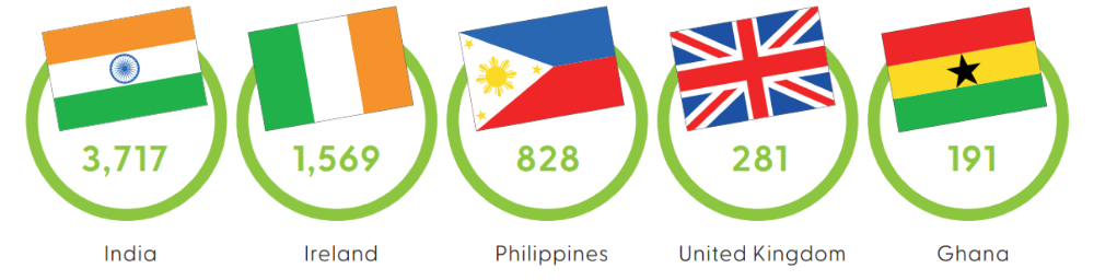As with last year, most new registrants came from non-EU countries, which includes the UK since 2022. The top countries of education of new overseas registrants were India (3,717), Philippines (828), United Kingdom (281) and Ghana (191).